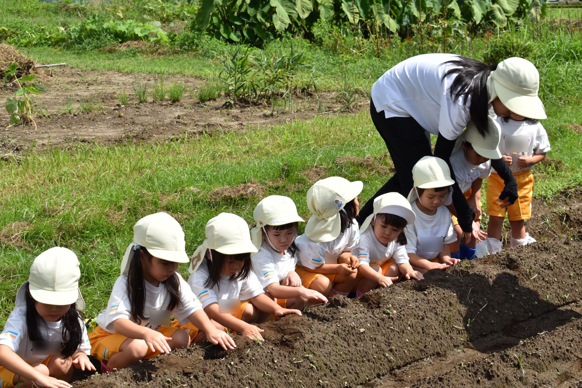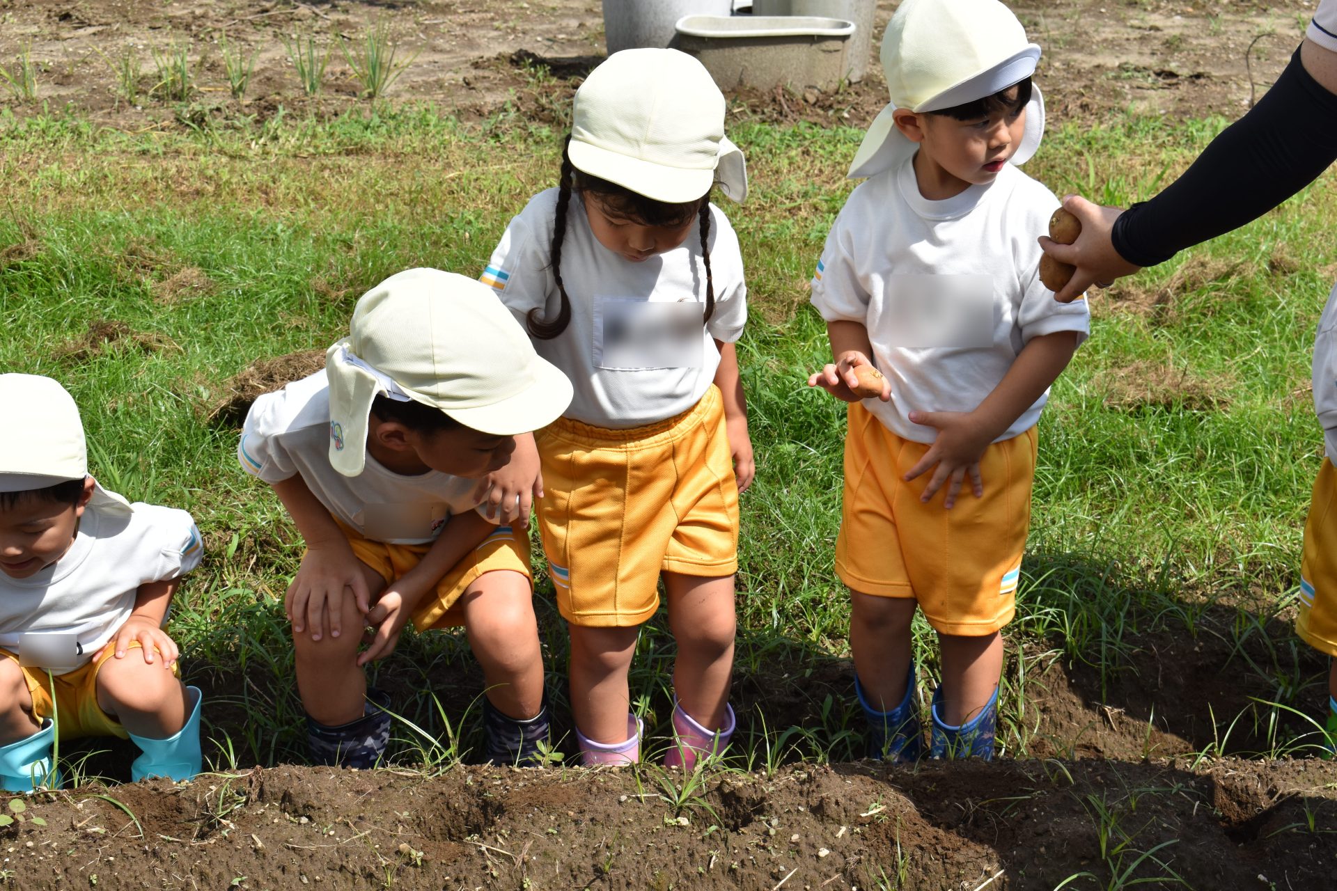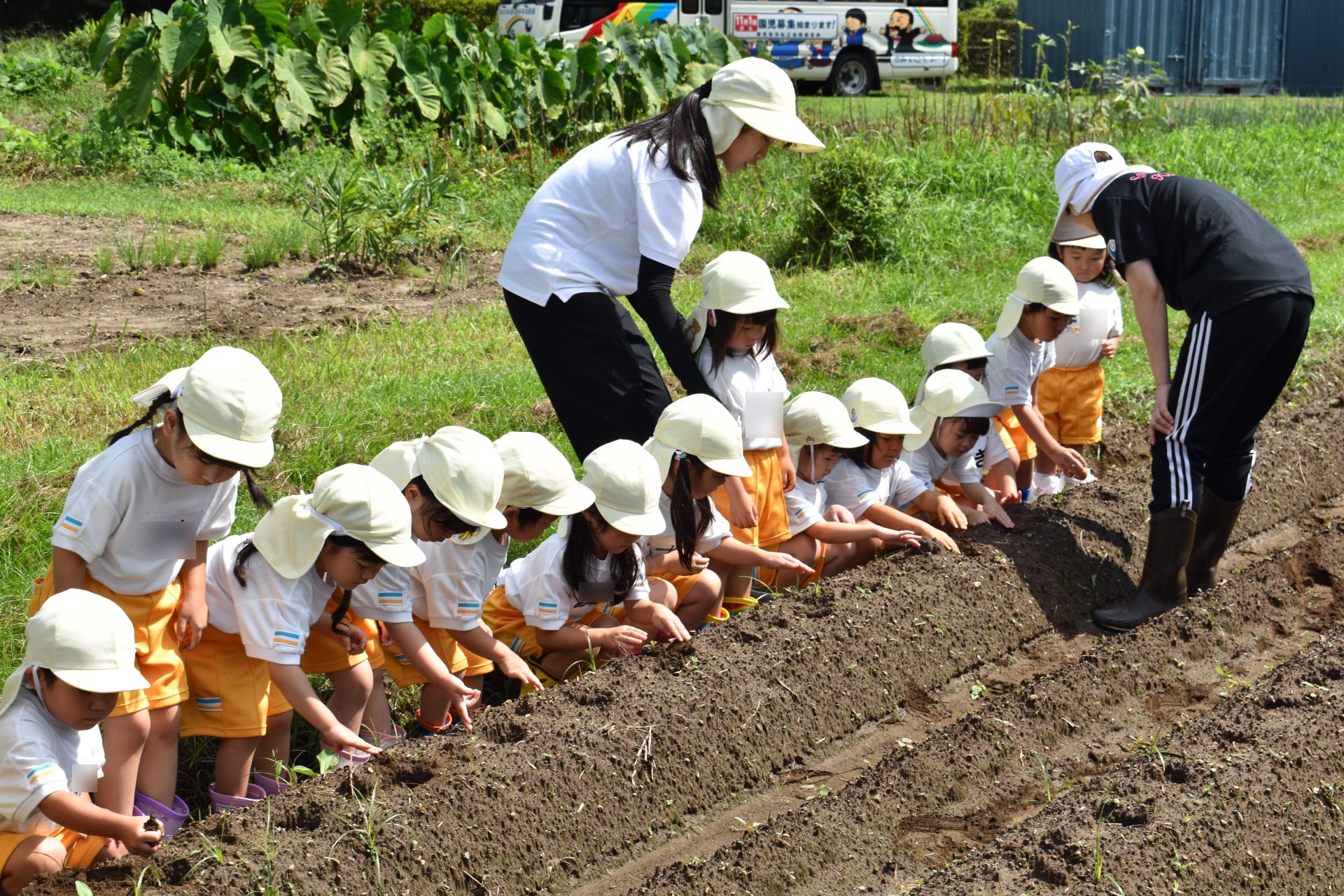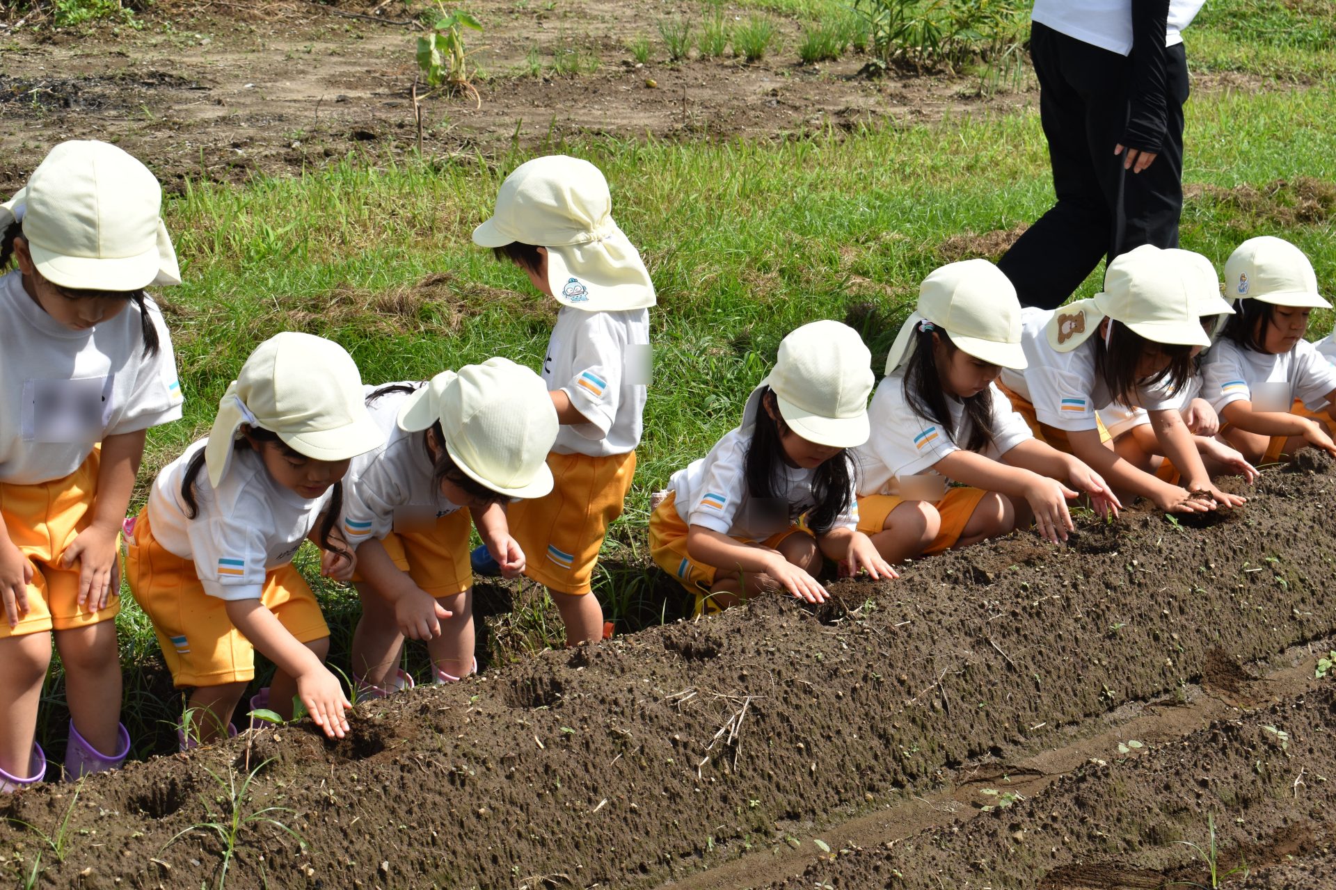 9月19日金曜日、たんぽぽ組の子どもたちが、ジャガイモ植え付けを行いました。9月に入ったとはいえ、とても暑い日でしたが、子供たちは一生懸命頑張って、畑全部に植え付けてくれました。12月の収穫が今からとても楽しみです。 も楽しみです。